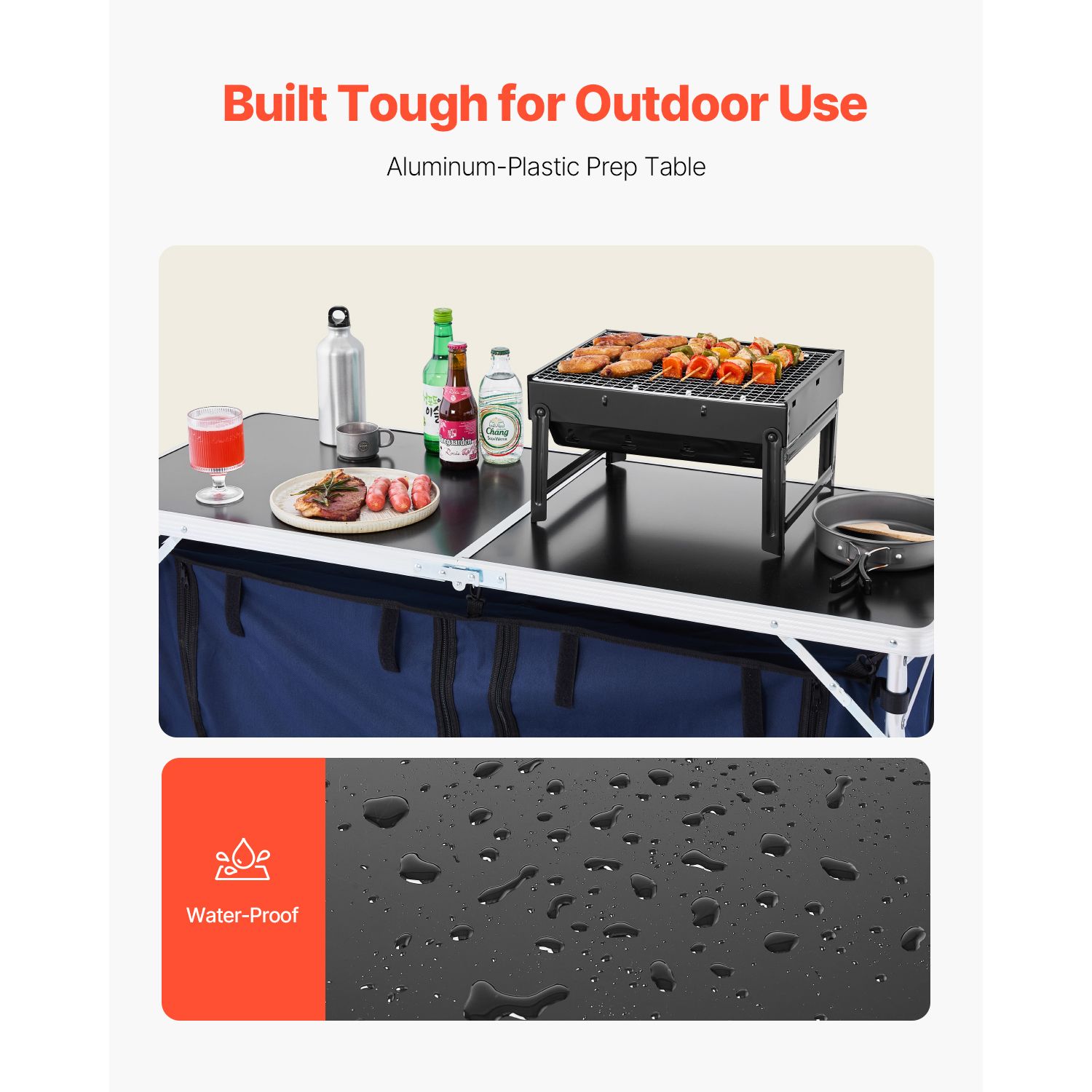 2.Built for Outdoor Use: Made with aluminum-alloy tubes and a sturdy aluminum-plastic countertop, this camping kitchen station is built for long-lasting durability