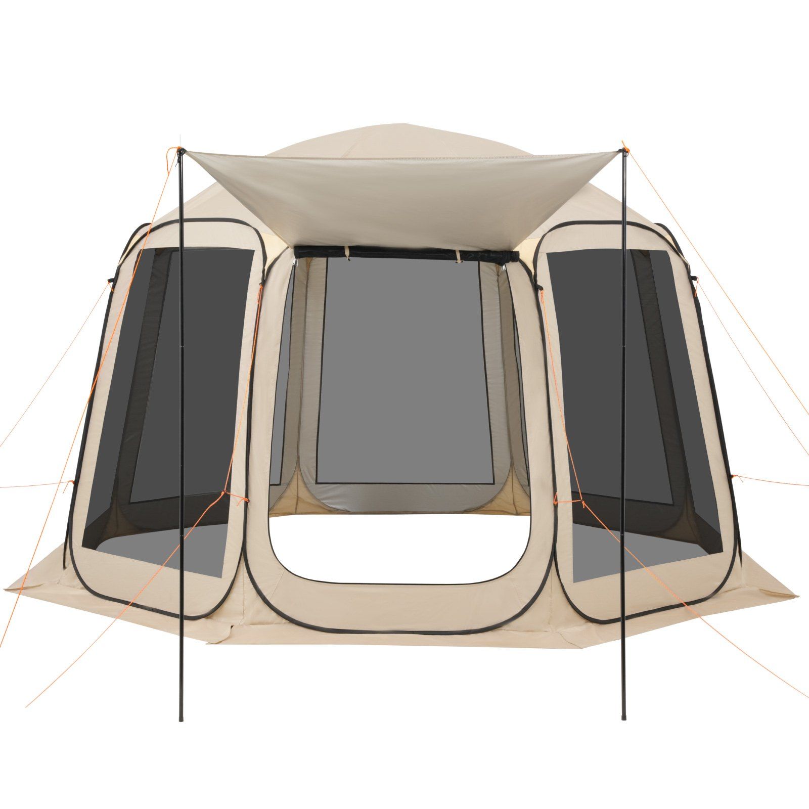 Screen House Tent, 12 x 11 ft, 10-12 Person Pop Up Screen Tent with Extended Awning, Portable Screened in Canopy with Carry Bag, Netting Sides, for Patio, Backyard, and Outdoor Activities, Beige